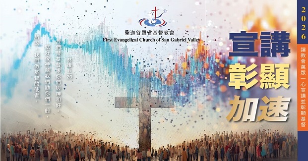 Welcome to the First Evangelical Church of San Gabriel Valley Web site. This site is specially designed to enhance communication between you and the body of Christ. We sincerely invite your active participation in fostering a community that cares for one another, and thus becoming a blessing to many. Please feel free to express your needs and prayer requests, so that we can pray for you. We also covet your prayers for the church. May God's name be magnified through His church.